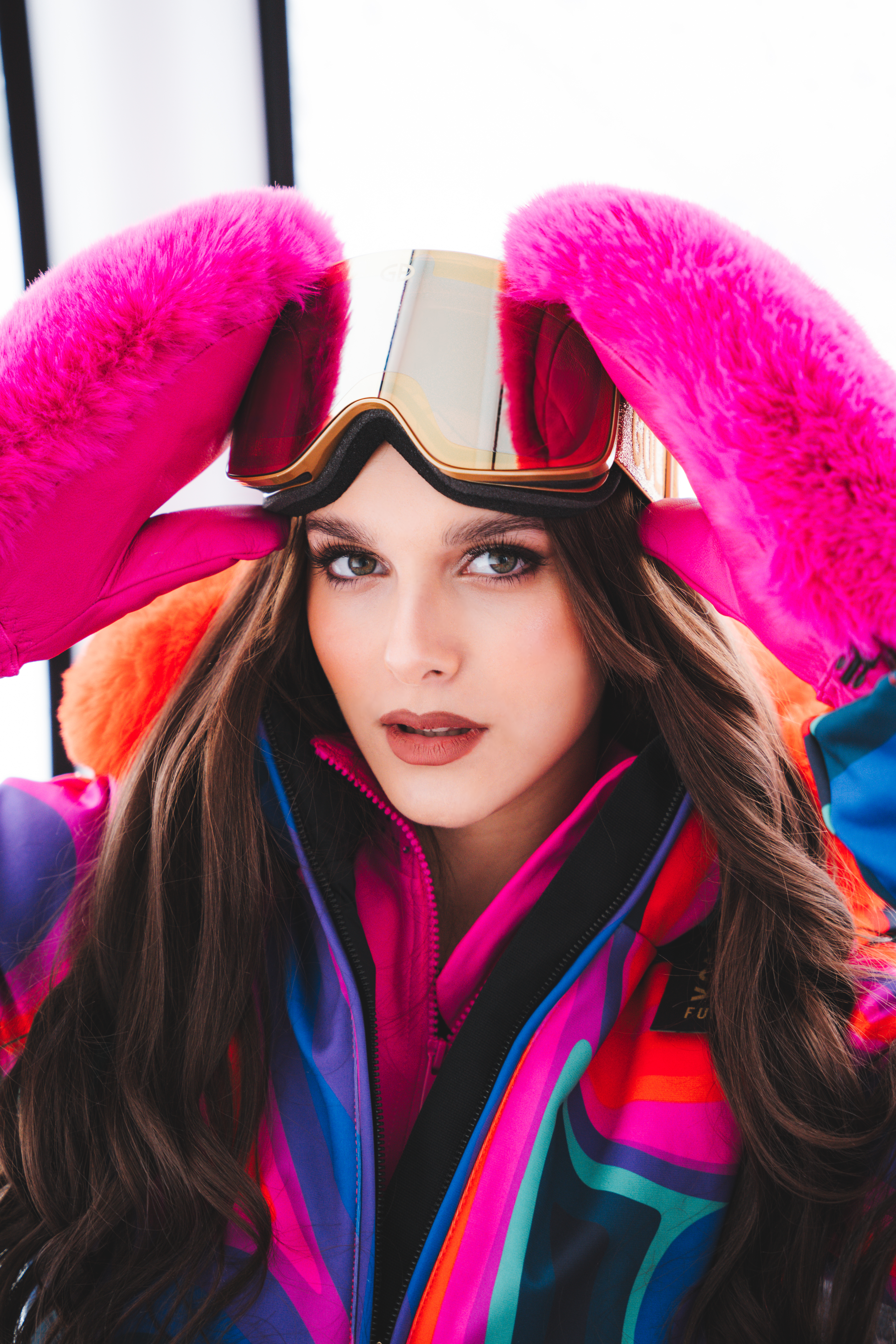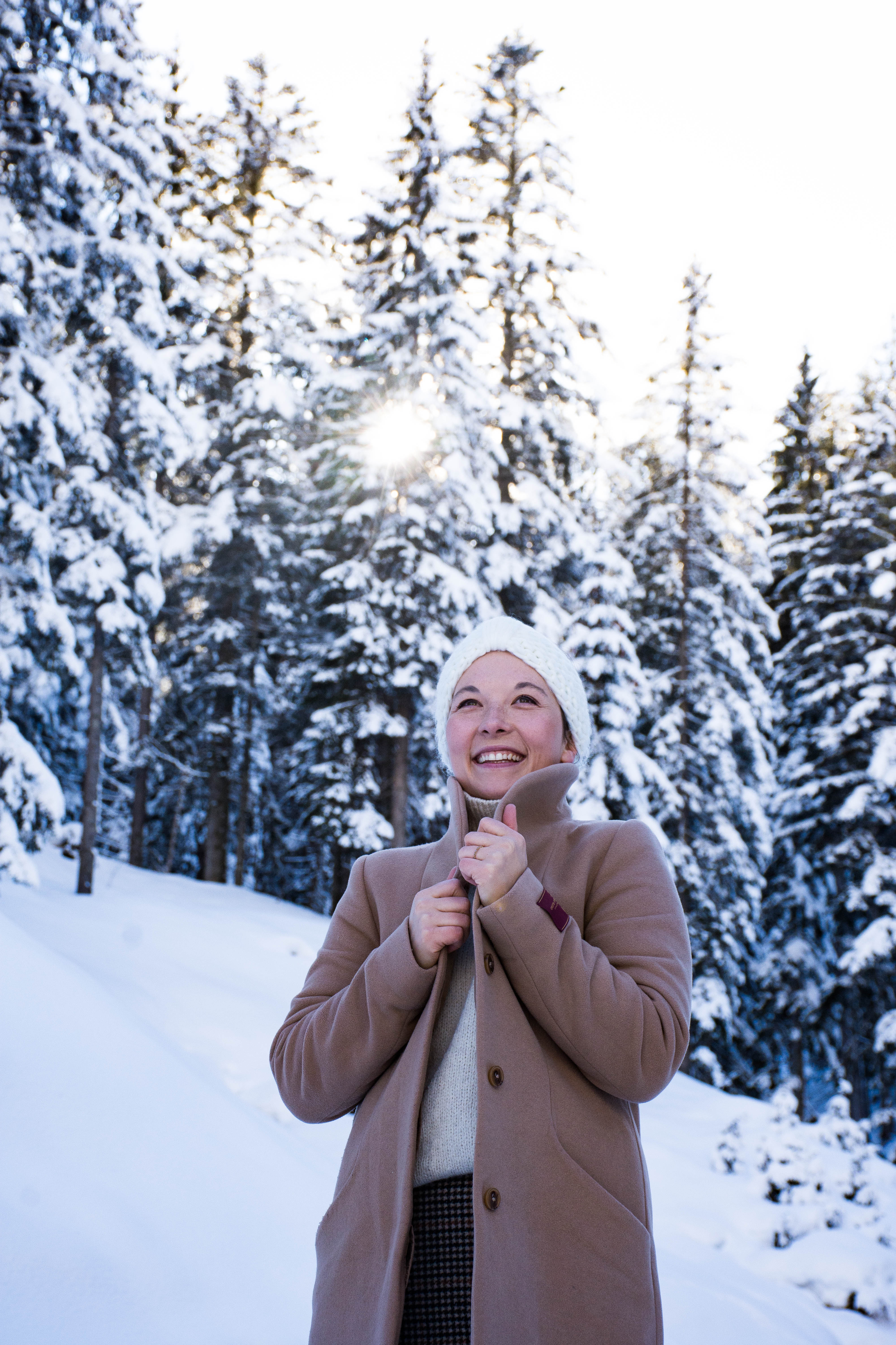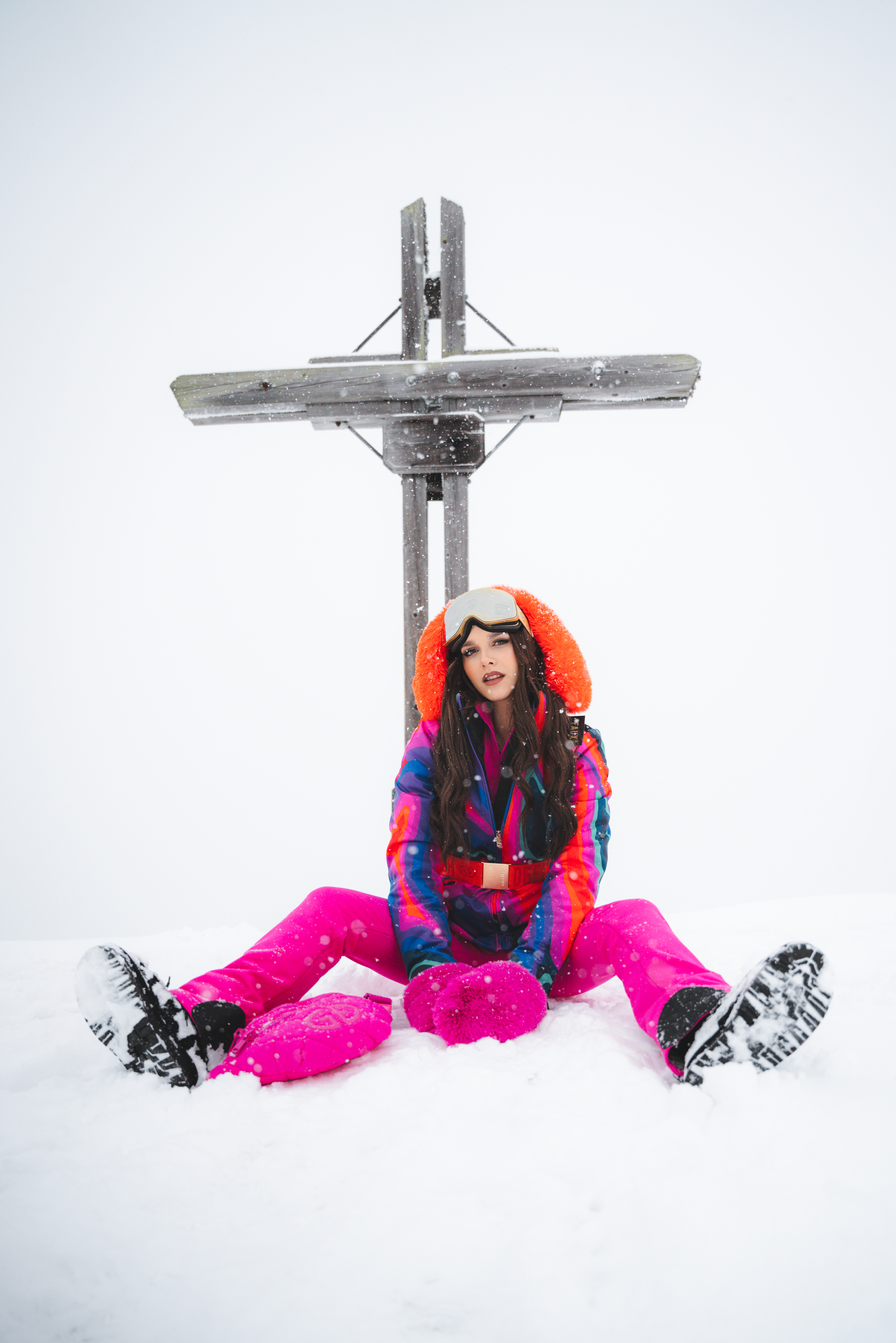 „Wir sind Ski WM! Die Vorfreude im Pinzgau ist groß, denn endlich wird das sportliche Jahrhundertereignis in Saalbach-Hinterglemm über die Bühne gehen… Fotografin Laura Krähe erwählte die Wildenkarhütte und die Schönleitenbahn zur Fotolocation, und als noch dicke Schneeflocken vom Himmel fielen, war die winterliche Kulisse perfekt…“