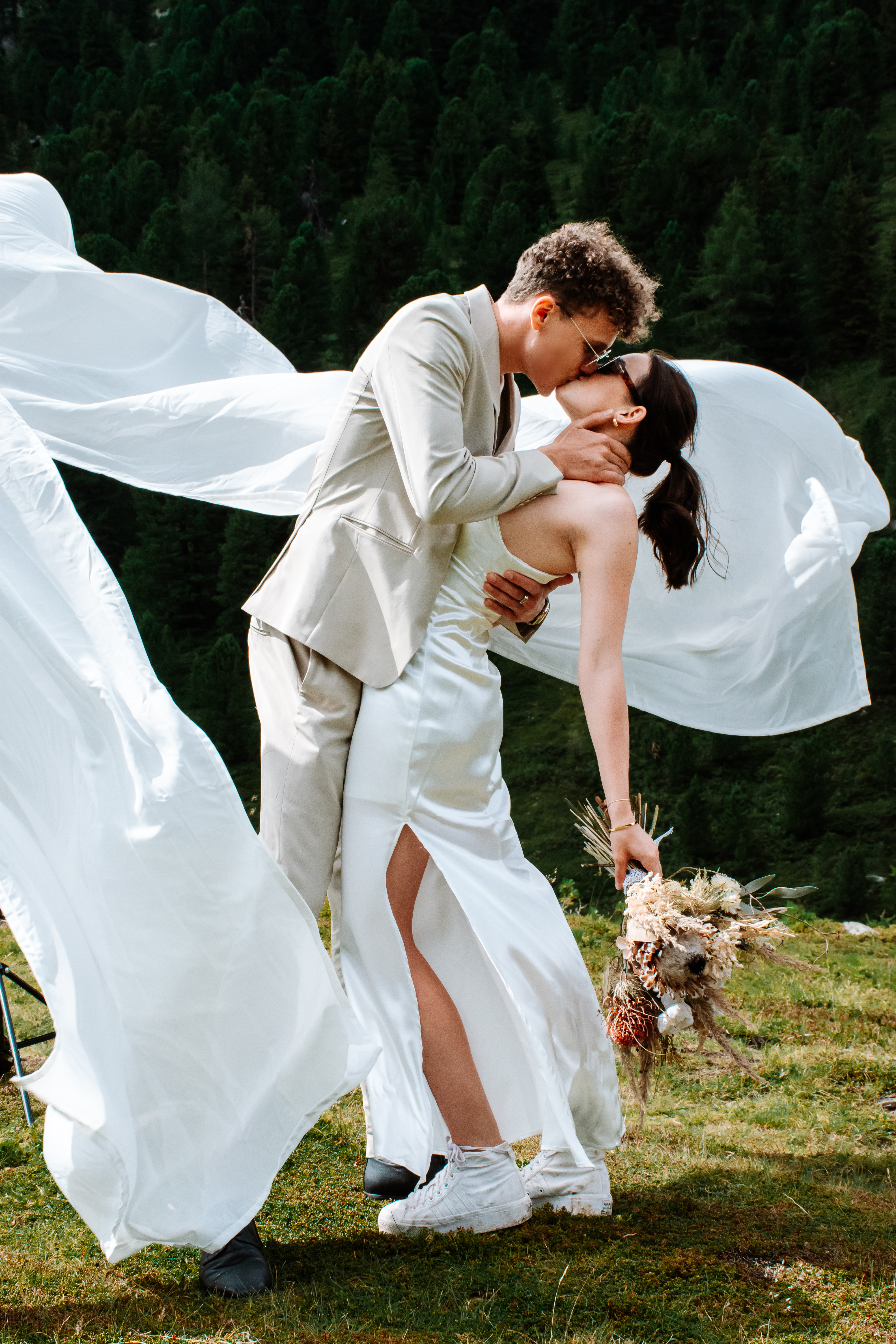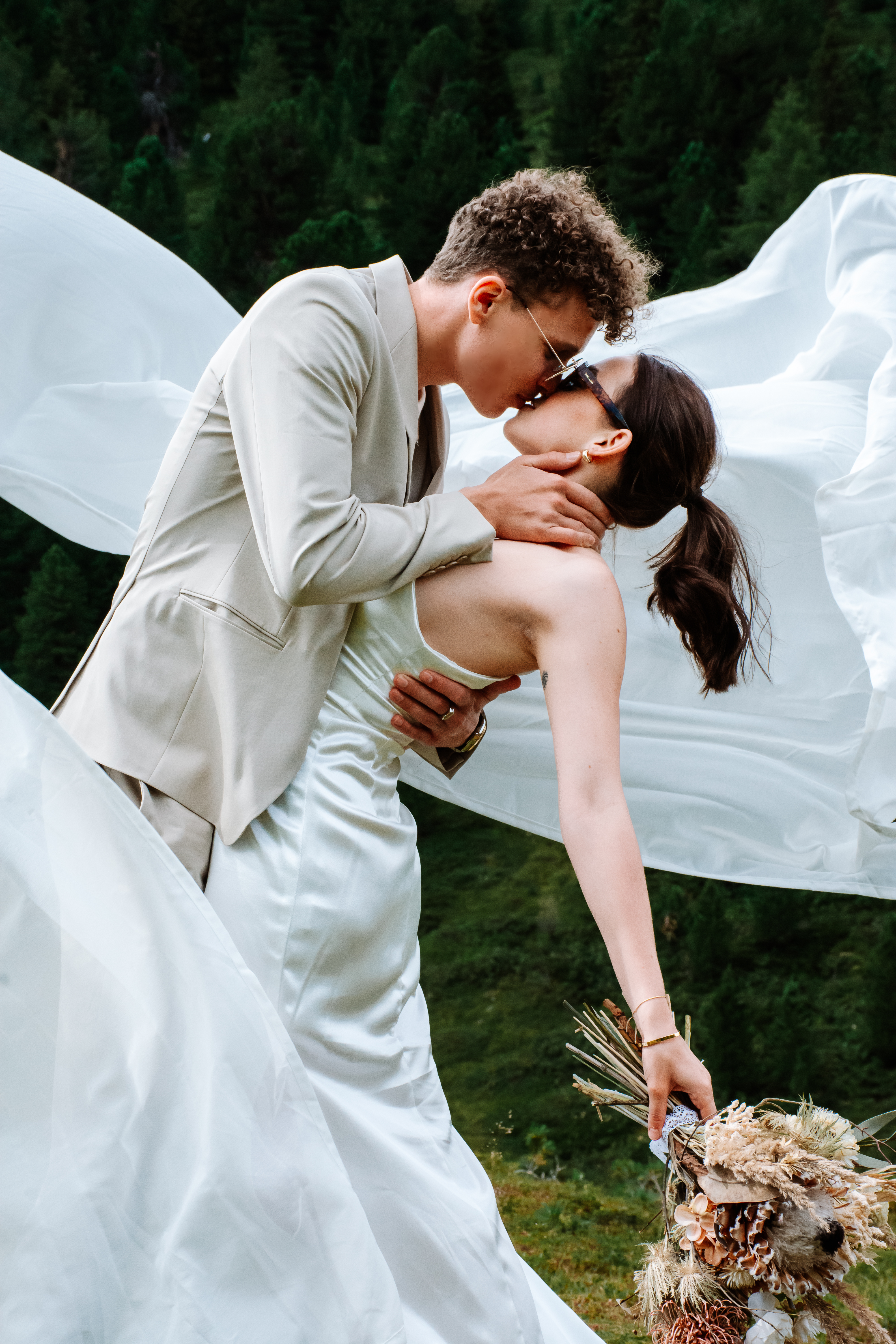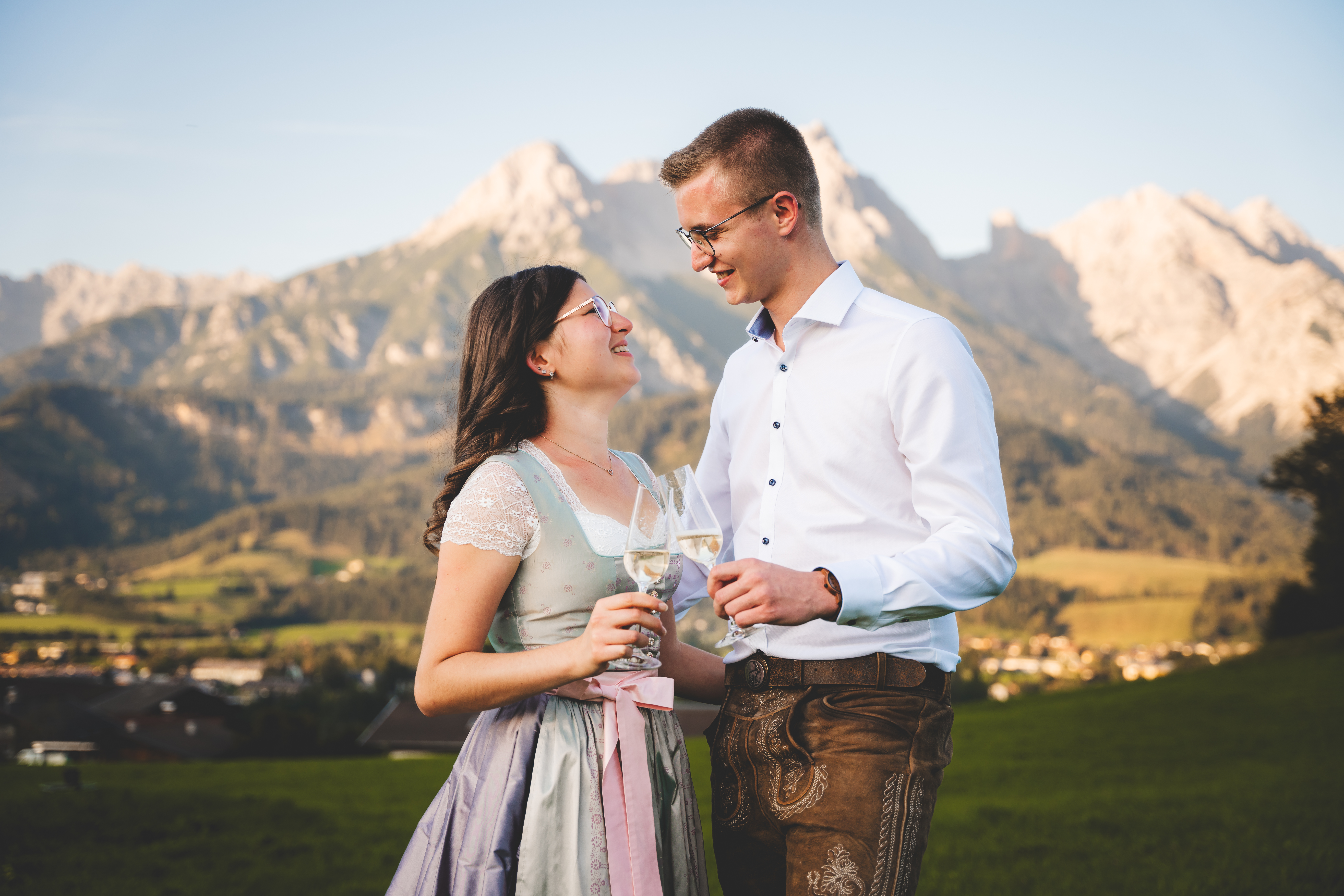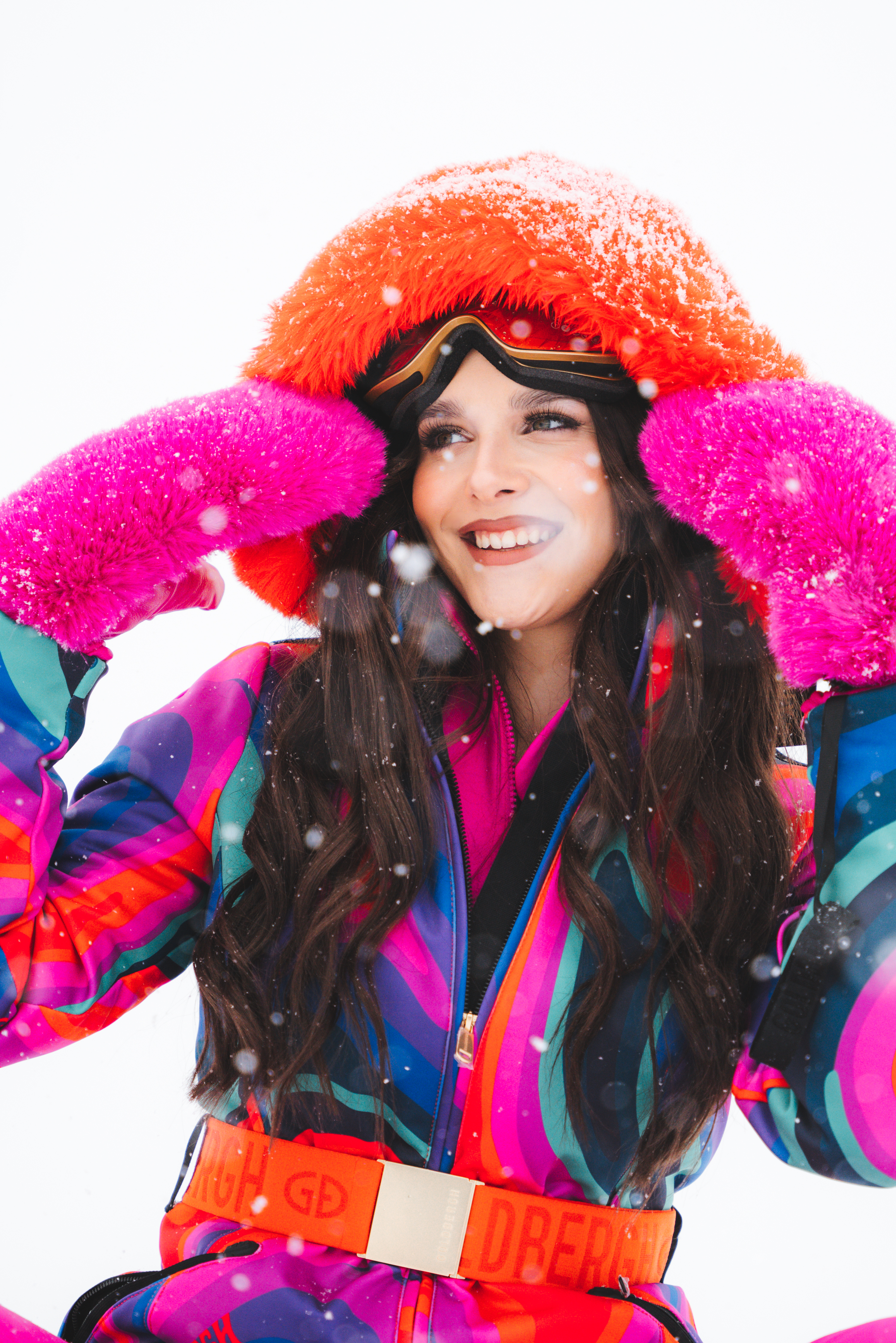 „Wir sind Ski WM! Die Vorfreude im Pinzgau ist groß, denn endlich wird das sportliche Jahrhundertereignis in Saalbach-Hinterglemm über die Bühne gehen… Fotografin Laura Krähe erwählte die Wildenkarhütte und die Schönleitenbahn zur Fotolocation, und als noch dicke Schneeflocken vom Himmel fielen, war die winterliche Kulisse perfekt…“